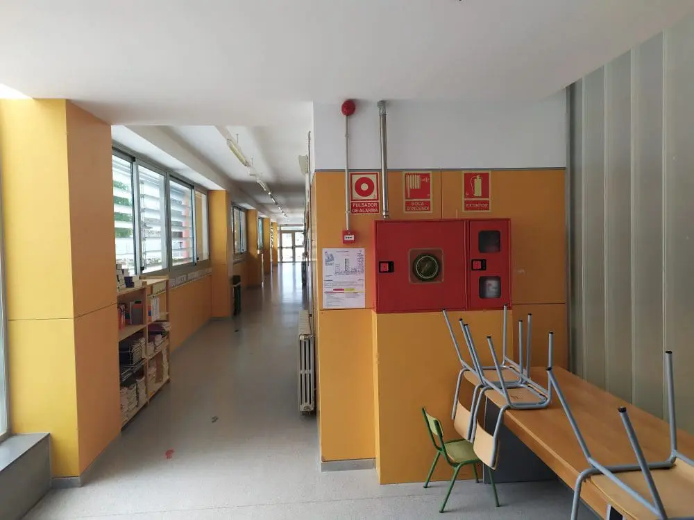 Detalle de instalación contra incendios en pasillo de edificio destinado a equipamiento municipal